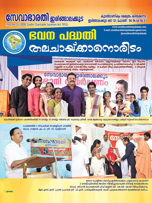 കുടുംബനാഥന്റെ അകാല നിര്യാണത്താൽ നിരാശ്രയരായ ഭാര്യക്കും മക്കൾക്കും അദ്ദേഹം തുടങ്ങിവച്ച വീടിന്റെ നിർമ്മാണം ഇരിങ്ങാലക്കുട സേവാഭാരതി സുമനസ്സുകളുടെ സഹകരണത്തോടെ പൂർത്തീകരിച്ച് ‘ബോധിനി സേവാകേന്ദ്രം’ എന്ന് പേരിട്ട വീടിന്റെ ഗൃഹപ്രവേശന ചടങ്ങ് ആർ എസ് എസ് വിഭാഗ് സദസ്യൻ കെ ആർ . ദേവദാസ് ഉദ്ഘാടനം നിർവഹിച്ചു.