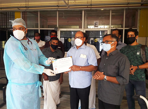ആശുപത്രിയിലെ പ്രത്യേകം സജ്ജമാക്കിയ വേദിയിൽ വച്ച് ആദരിച്ചു. ഇരിങ്ങാലക്കുട സേവാഭാരതി പ്രസിഡൻ്റ് നളിൻ ബാബുവിൻ്റെ അദ്ധ്യക്ഷതയിൽ